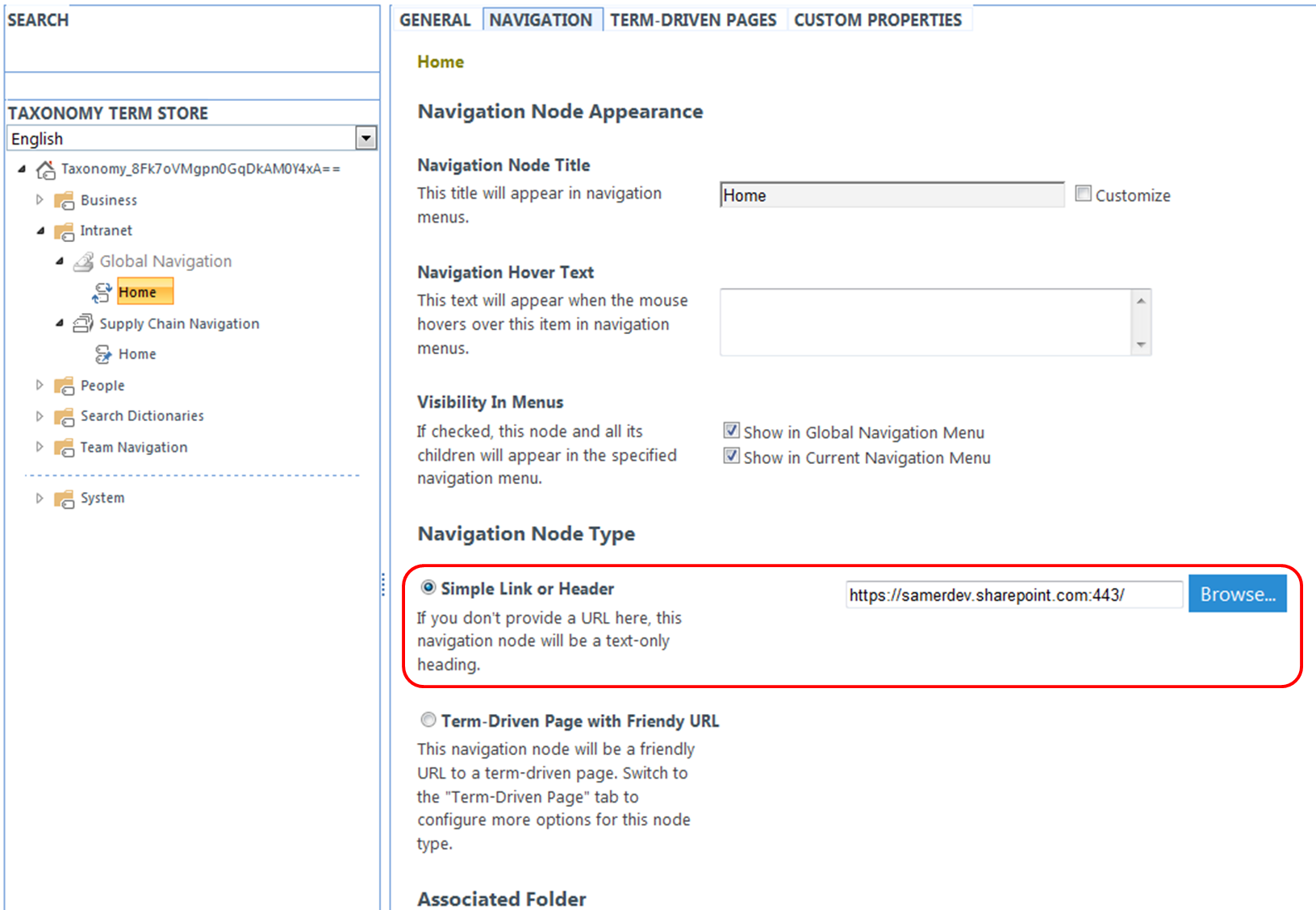 - For Global Navigation scoped Term Sets, go to the Term Store